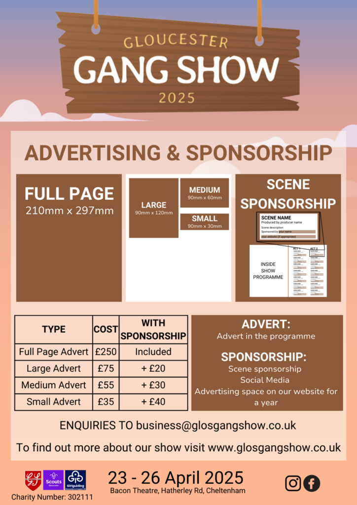 Gloucester Gang Show is fully self-funded and relies heavily on funds raised from ticket sales and fundraising supporters.